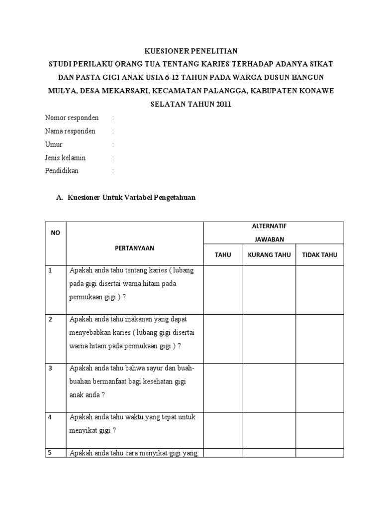 C. Kusioner Untuk Variabel Tindakan