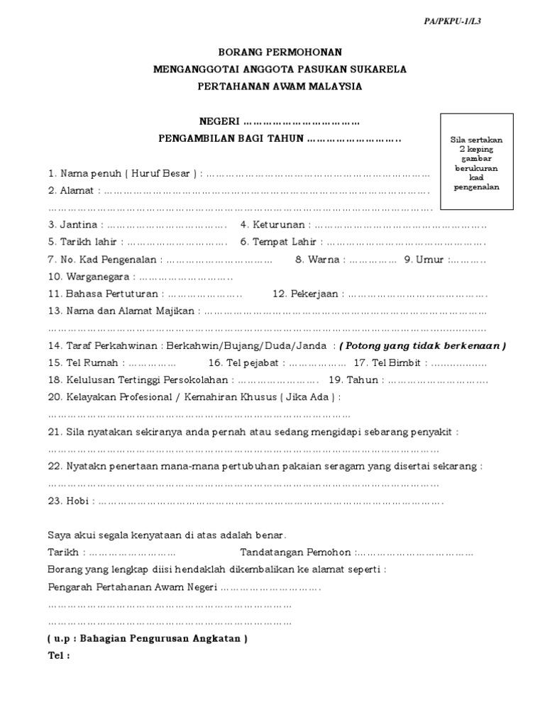 BORANG PERMOHONAN