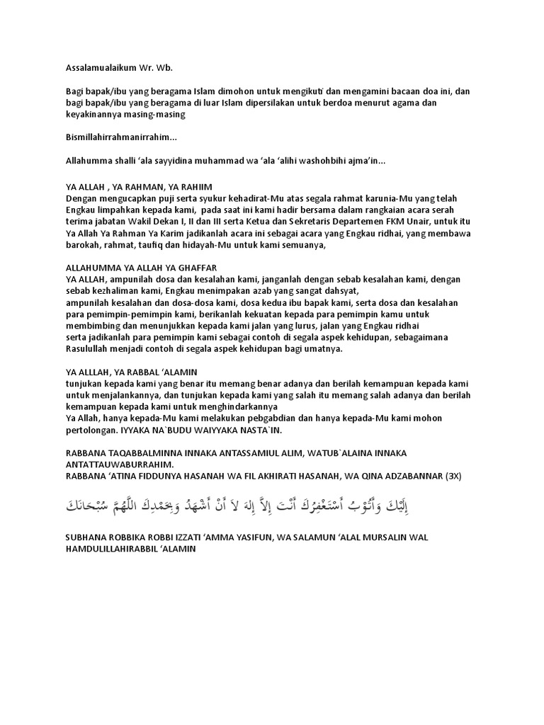 Bagi bapak/ibu yang beragama Islam dimohon untuk mengikuti dan mengamini bacaan doa ini, dan