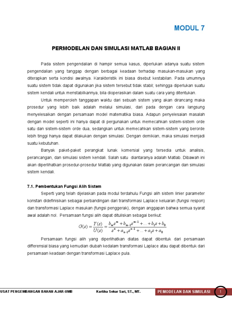 PERMODELAN DAN SIMULASI MATLAB BAGIAN II