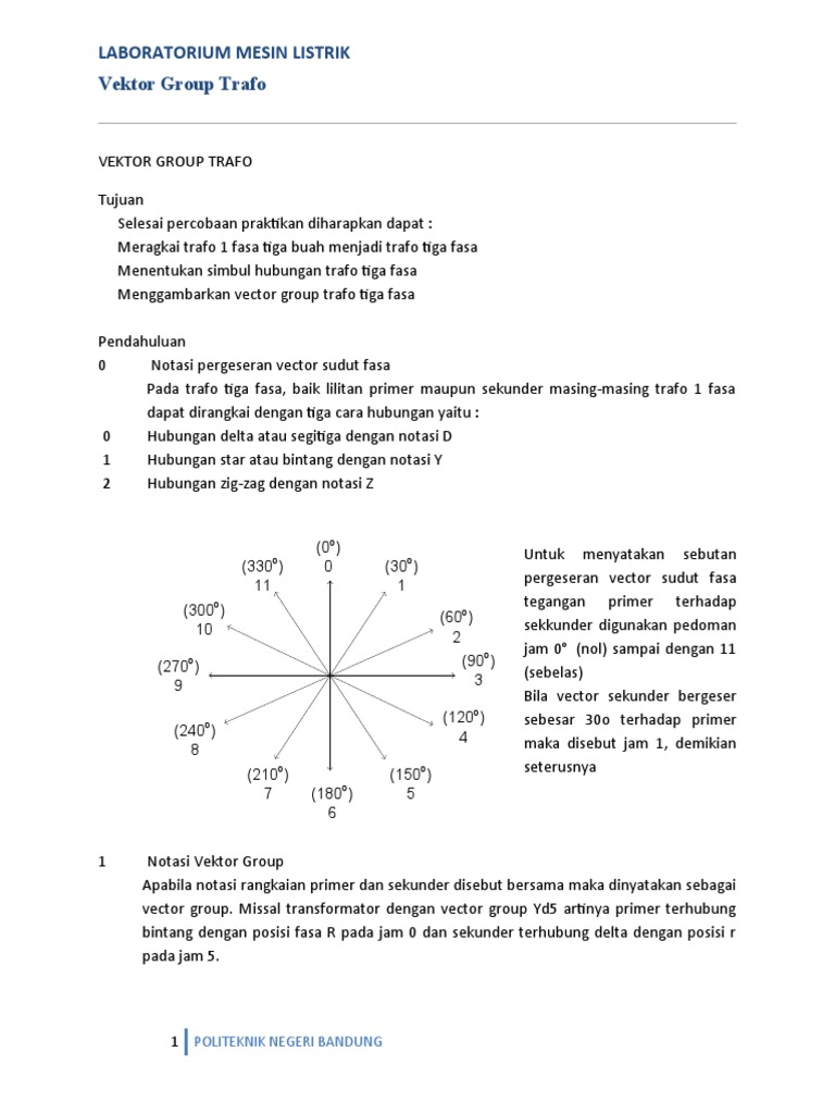 0 Berdasarkan percobaan yang telah dilakukan maka hubungan vector trafo