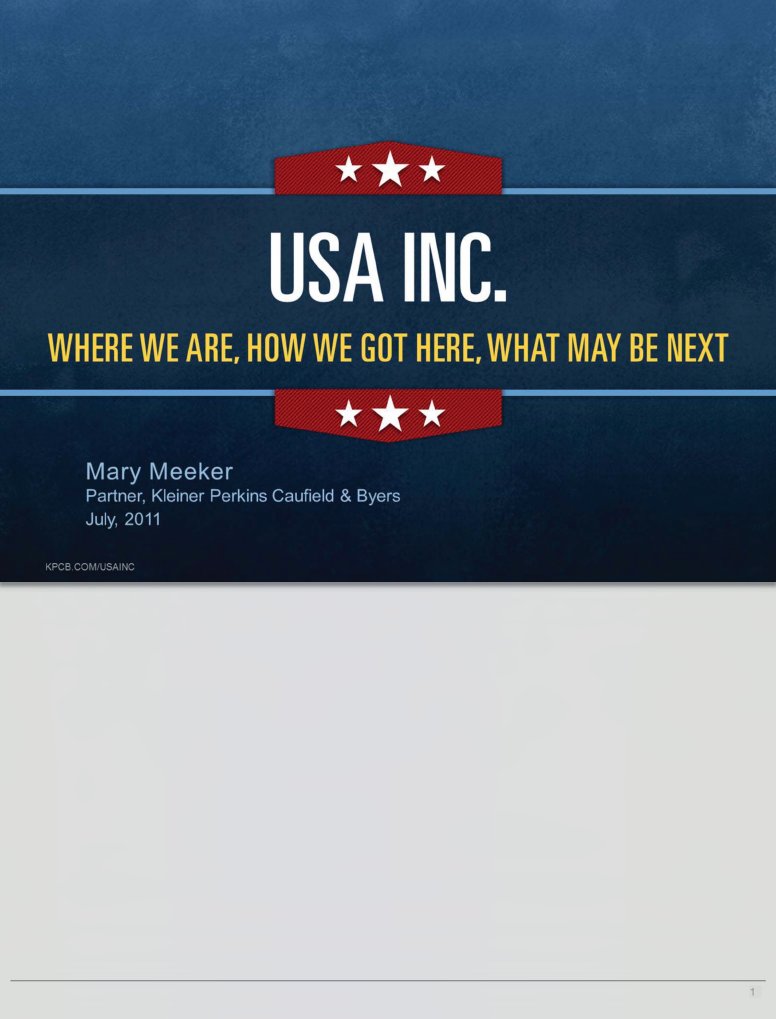 The new summary presentation of the USA Inc. report is more visual in nature, and is accompanied by an extensive audio commentary (available at kpcb.com/usainc) from the author that offers fresh perspective.