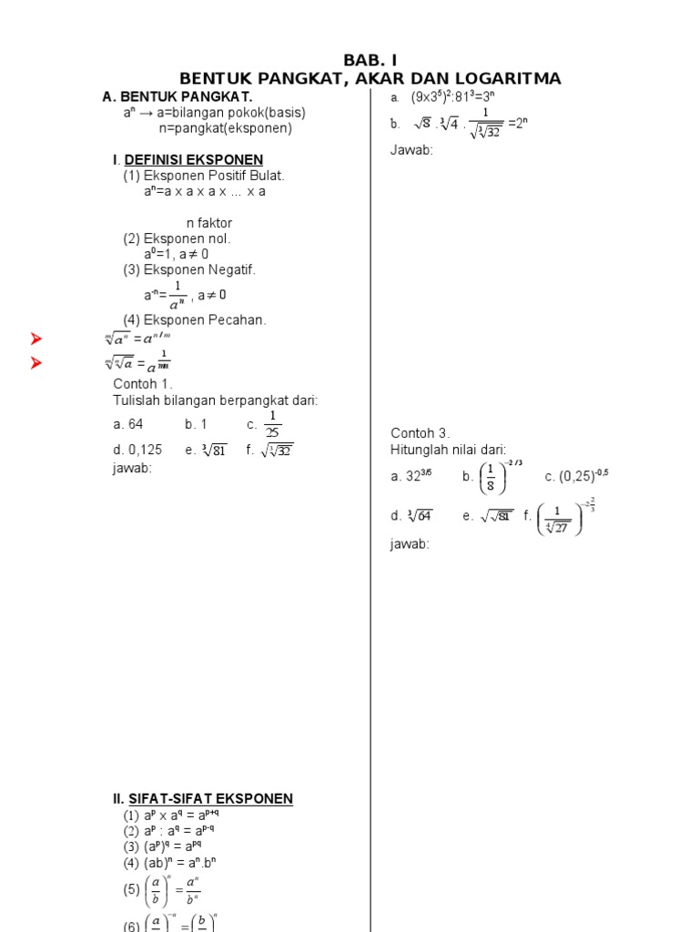BENTUK PANGKAT, AKAR DAN LOGARITMA