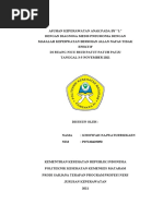 b. Stadium II (48 jam berikutnya) Disebut hepatisasi merah, terjadi sewaktu alveolus terisi oleh sel darah merah, eksudat dan fibrin yang dihasilkan oleh penjamu (host) sebagai bagian dari reaksi peradangan. Lobus yang terkena menjadi padat oleh karena adanya penumpukan leukosit, eritrosit dan cairan, sehingga warna paru menjadi merah dan pada perabaan seperti hepar, pada stadium ini udara alveoli tidak ada atau sangat minimal sehingga anak akan bertambah sesak. Stadium ini berlangsung sangat singkat, yaitu selama 48 jam. c. Stadium III (3 8 hari) Disebut hepatisasi kelabu yang terjadi sewaktu sel-sel darah putih mengkolonisasi daerah paru yang terinfeksi. Pada saat ini endapan fibrin terakumulasi di seluruh daerah yang cedera dan terjadi fagositosis sisa-sisa sel. Pada stadium ini eritrosit di alveoli mulai diresorbsi, lobus masih tetap padat karena berisi fibrin dan leukosit, warna merah menjadi pucat kelabu dan kapiler darah tidak lagi mengalami kongesti. d. Stadium IV (7 12 hari) Disebut juga stadium resolusi yang terjadi sewaktu respon imun dan peradangan mereda, sisa-sisa sel fibrin dan eksudat lisis dan diabsorbsi oleh makrofag sehingga jaringan kembali ke strukturnya semula. F. Gambaran Klinis Bronkopneumonia biasanya didahului oleh infeksi saluran nafas bagian atas selama beberapa hari. Suhu dapat naik secara mendadak sampai 3940C dan mungkin disertai kejang karena demam yag tinggi. Anak sangat gelisah, dispnu, pernafasan cepat dan dangkal disertai pernafasan cuping hidung dan sianosis di sekitar hidung dan mulut. Batuk biasanya tidak dijumpai di awal penyakit, anak