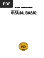 Visual Basic! Kata ini sepertinya sudah tidak asing lagi bagi para pemakai komputer, khususnya yang orang-orang yang senang bahasa pemograman. Sejak bahasa ini muncul, seakan-akan menjadi kiblat bagi para progremmer untuk mempelajari dan menguasainya. Siapapun yang tidak mengetahui Visual Basic adalah orang yang ketinggalan katanya. Modul ini di susun untuk memberikan panduan pengunaan perangkat lunak Visual Basic, sehingga pembaca dapat mencobanya langsung. Pejelasan tiap modul di sajikan dalam bentuk step by step, sehingga lebih mudah dipelajari. Dan modul Visual Basic ini disusun untuk melengkapi kebutuhan belajar mahasiswa di Bina Sarana Informatika, khususnya bagi mereka yang ingin menekuni bidang pemograman berbasis windows. Penulis menyadari keterbatasan penyusunan modul ini masih jauh dari sempurnah. Oleh karena itu saran dan kritik dari para pembaca sangat di hargai. Saran, kritik atau pun pertanyaan dapat di kirim melalui email ke: Agus_muhardi@bsi.ac.id atau nusa_dharma2003@yahoo.com atau nusa_dharma@yahoo.com Akhir kata semoga pembaca mendapat menfaat dari buku ini.Terima Kasih.