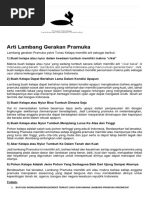 C. Penggunaan Lambang Pramuka. Lambang Gerakan Pramuka dapat di gunakan pada Panji, Bendera, papan nama satuan dan Kwartir, tanda Pengenal, dan alat administrasi Gerakan Pramuka. Penggunaan tersebut dimaksudkan sebagai alat pendidikan untuk mengingatkan dan menanamkan pada setiap anggota Pramuka agar memiliki sifat dan keadaan seperti arti kiasan lambang tunas kelapa tersebut. BAB III SALAM PRAMUKA A. Pengertian Salam Pramuka. Salam Pramuka adalah suatu perwujudan dari penghargaan terhdap orang lain atas dasar tata susila yang sesuai dengan kepribadian bangsa indonesia. Salam Pramuka merupakan tanda penghormatan untuk orang yang berbudi, siapa yang melihat dulu ia yang memberikan salam dahulu kepada orang akan di beri salam dan tidak memandang kepangkatannya dalam masyarakat. Salam Pramuka selain berarti sebagai penghormatan, juga berarti mengingatkan akan Tri Satya dan Pancasila kepada yang diberi salam, sehingga setiap anggota pramuka berkenan menyampaikan salam kepada semua Pembimbing dan Pembina serta kepada sesama Pramuka, juga kepada semua yang berhak menerimanya. Salam Pramuka juga merupakan Suara Perwujudan ikatan jiwa yang erat, maka didalam memberi atau menjawab Salam Pramuka harus dilaksanakan dengan tertib dan sempurna, sehingga tercermin semangat Pramuka yang Rajin, gembira dan penuh keikhlasan. B. Macam-macam Salam Pramuka. Salam Pramuka ada dua macam yaitu : 1. Salam Biasa. Salam biasa di sampaikan kepada Semua Pramuka. Orang Tua. Guru Kakak Pembina/Pembimbing Sahabat/kawan Orang lain yang dianggap perlu menerima salam. 2. Salam Penghormatan dan Salam janji. Salam Penghormatan. Salam penghormatan merupakan suatu penhargaan yang mendalam yang disampaikan kepada : Pramuka Utama ( Presiden RI). Bendera Sang Saka Merah Putih (dalam Upacara). Lagu Kebangsaan (dalam upacara resmi). Pani-panji Pramuka (dalam Upacara resmi). Menteri-menteri atau tamu agung Negara. Jenazah (dalam Upacara pemakaman atau bertemu dijalan). Salam Janji. Salam Janji adalah tanda penghormatan yang dilakukan setiap anggota Pramuka sewaktu mendengar Tri Satya sedang dibacakan. C. Cara menggunakan dan mengucapkan Salam dengan benar. 1. Dalam Keadaan berhenti. a. Tanpa Peci/songkok/baret. Sikap sempurna, dengan gerakan cepat tangan di angkat kearah pelipis kanan, siku-siku 15 derajat seorang kedepan, kelima jari tangan rapat satu sama lain, telapak tangan seorang kebawah dan kekiri ujung jari tengah dan telunjuk mengenai pelipis. Pergelangan tangan lurus, bahu tetap seperti dalam sikap sempurna, pandangan mata tertuju kepada yang diberi salam. Jika selesai Salam, maka tangan di kembalikan secara cepat ke sikap sempurna kembali.