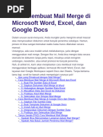 Pembuatan Banyak Dokumen dengan Mail Merge Friday, 11 January 2008 Saya membuat artikel ini karena prihatin pada rekan kantor saya yang mengurusi masalah administrasi seperti membuat surat dan menyebarkan undangan ke mana-mana. Ternyata dalam membuat undangan, dia masih menggunakan satu template yang sama, lalu di-copy paste ke banyak halaman, lalu di-edit satu-satu (hehe...sorry ya, gue ga sebutin nama loh :P). Cara ini sih bagus, kalau dokumen yang diubah sedikit, misalnya sekitar 3-5 lembar. Dulu pun saya begitu. Tapi kalau banyak? Modar juga :P. Saya pernah mengalami harus mencetak kupon door prize sebanyak 1500 lembar (3 rim loh). Kupon door prize, artinya semua nomor dalam tiap kupon tidak boleh sama. Mau edit satu-satu? :) Dalam pembuatan mail merge, ada dua dokumen yang harus dipersiapkan, yaitu: a. Document Template, yaitu dokumen yang akan digunakan sebagai pola pencetakan. Selama ini saya baru mencoba dengan MS Word dan MS Publisher. Saya belum mencoba untuk software lainnya. b. Data Source, yaitu daftar data yang akan dimasukkan dalam dokumen point b. Data source bisa dari berbagai macam sumber, salah satunya adalah data dari file Excel. Walaupun data yang akan dimasukkan (no. b) bisa dibuat belakangan, namun saya menganjurkan