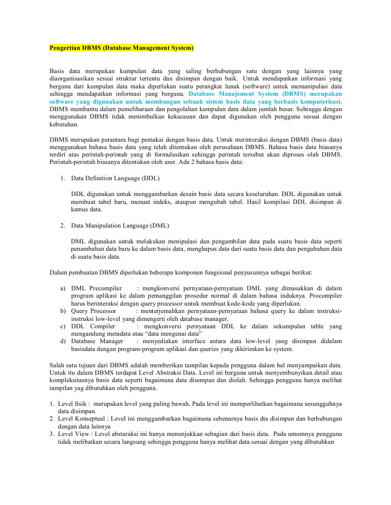 mengontrol struktur sebuah database dan mengakses data. Dalam DBMS, pergantian alamat hanya boleh