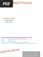 BAB 4. PENUTUP 4.1 Kesimpulan Corned Beef atau Kornet, adalah salah satu jenis produk olahan daging sapi. Tujuan pembuatan kornet daging sapi adalah untuk tetap dapat memperoleh produk daging sapi yang berwarna merah, awet dan praktis. Peralatan yang diperlukan adalah chopper, mixer ,alat pengukus, exhauster, mesin penutup kaleng, dan retort. Bahan dasar pembuatan kornet adalah daging sapi yang digiling. Bahan tambahan yang diperlukan adalah garam dapur, nitrit, alkali fosfat, bahan pengisi, air, lemak, gula, dan bumbu. Secara umum dapat dikatakan bahwa daging kornet dalam kaleng mempunyai nilai gizi yang cukup baik, khususnya protein, vitamin, dan mineral. Secara umum, ciri-ciri yang dapat digunakan untuk menilai kualitas kornet dalam kaleng adalah Flat Sour, Penggembungan Kaleng (Swells), StackBurn, Kaleng yang penyok, Kaleng yang bocor dan kaleng yang berkarat. DAFTAR PUSTAKA Astawan , Made. Kornet. http://kulinerkita.multiply.com/reviews/item/116 [11 April 2011] Leith, P.1989. The Cooks Hand Book. Papermack Division, Macmillan Publ. Ltd.,London