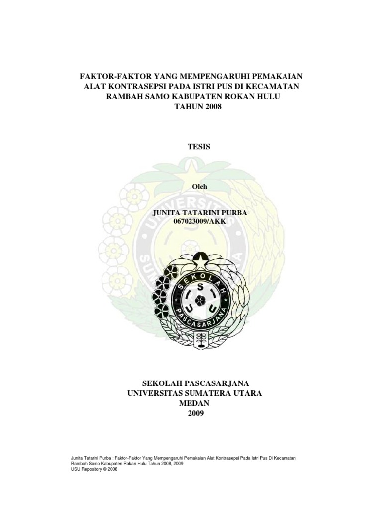 FAKTORFAKTOR YANG MEMPENGARUHI PEMAKAIAN ALAT KONTRASEPSI PADA ISTRI PUS DI KECAMATAN RAMBAH SAMO KABUPATEN ROKAN HULU TAHUN 2008