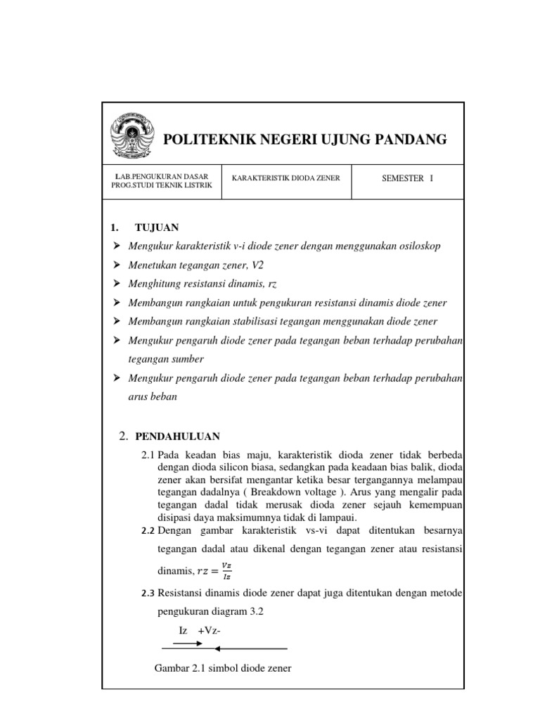 LAB.PENGUKURAN DASAR PROG.STUDI TEKNIK LISTRIK KARAKTERISTIK DIODA ZENER