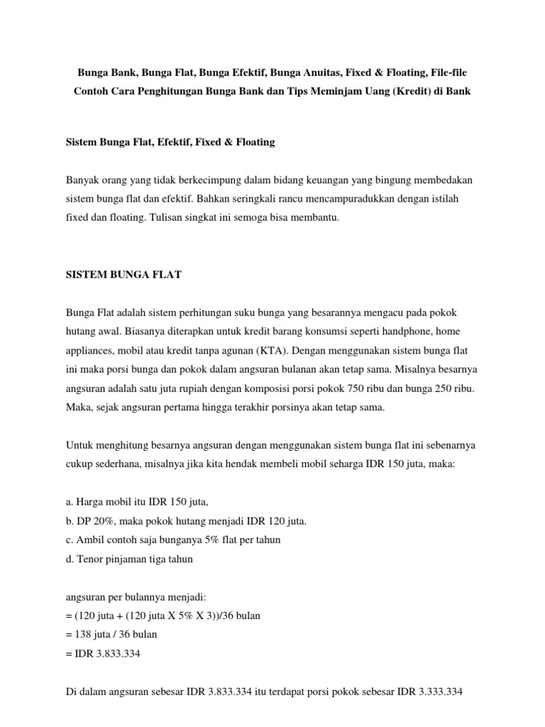 Bunga Bank, Bunga Flat, Bunga Efektif, Bunga Anuitas, Fixed & Floating, File-file Contoh Cara Penghitungan