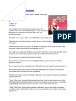 banget! Laras marah. Hanny memang begitu. Udah, enggak usah di masukin ke hati. Cuekin aja. Kita pindah ke kamar sebelah aja, yuk. Aku dan Laras kemudian bergeras meninggalkan kamar yang ditempati Hanny dan Wary. Kami menuju kamar yang lain, yang terletak tidak jauh dari kamar mereka. Di rumah yang kami kontrak ini, hanya mempunyai dua kamar. Satu kamar untuk tidur. Satu kamar lagi untuk lemari pakaian dan rak buku. Kami sengaja mengaturnya seperti itu. Karena yang tinggal di rumah ini bukan hanya dua orang. Melainkan tiga orang. Selain itu, agar kebersamaan dan kekeluargaan di antara kami lebih terasa. Sesampainya di kamar, laras langsung merebahkan diri ke karpet, yang berada tepat di tengahtengah deretan lemari. Aku yang memang sudah lelah, ikut berbaring di sampingnya. Tari, lo tahu enggak. Tadi pagi gue ketemu cowok, cakep banget. Rambutnya ikal, matanya cokelat, hidungnya mancung, senyumnya manis, terus di pipi kanannya ada tahi lalat. Pokoknya sempurna banget, deh. Gue suka sama dia. Ketemu di mana? Namanya siapa? tanyaku, antusias. Perasaan lelah itu hilang seketika, tergantikan olah semangat yang baru. Karena baru kali ini Laras menceritakan tentang perasaannya pada seorang pria. Baru kali ini dia jatuh cinta. Padahal usianya sudah hampir sembilan belas tahun. Gue ketemu dia waktu di toko buku. Namanya Fikri. Siapa?! tanyaku, tak percaya. Fikri. Fikri Adi Dinata. Kalau enggak salah, dia juga kuliah di kampus lo, di jurusan Kesehatan Masyarakat. Lo kenal?! Ih... salamin ya. Seluruh rasa antusias itu seakan luruh. Semangatku untuk mendengar cerita Laras, hilang begitu saja. Kebahagiaan yang tadi sempat mengisi relung hatiku, tercabut secara paksa. Meskipun begitu, aku tidak ingin mengecewakan Laras. Aku tetap mendengarkan cerita tentang pertemuannya dengan Fikri. Tak tega rasanya membuatnya kecewa. Ia begitu bersemangat, begitu bahagia. Aku benar-benar bingung sekarang. Aku harus bagaimana?! Laras ternyata mencintai Fikri, pacarku sendiri. Ini bukan salahnya, karena dia tidak pernah mengetahui bahwa aku dan Fikri, sebenarnya pacaran. Ini adalah kesalahanku sepenuhnya, karena aku tidak pernah memberi tahu Laras. Tapi aku tidak tega menghancurkan perasaannya. Cinta pertamanya! *** Fikri, hari ini kamu masih ada jam kuliah enggak? Enggak ada. Memang ada apa?