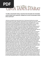 Malam yang indah seharusnya, gumam nya sambil menikmati indah nya sang rembulan yang malu-malu bersembunnyi di balik awan. Terdengar dari jauh suara jangkrik, dan juga seekor codot yang mungkin tengah berpesta , saat pisang yang di incar-incar akhir nya masak juga. Arif kembali menarik pandangan matanya yang tersangkut di bulan, kini di pejam kan ke dua matanya , angan nya jauh melayang mengejar bayangan wajah dan tawa sang kekasih nya. Kala pagi menyapa, Hand Phone nya pasti akan menjeri-njerit , memohon sang empu nya agar segera mengangkat nya. Assallamualaikum Mas,bangun, shalat subuh dulu ya, terdengar merdu suara kekasih hatinya .Dia selalu membangunkan Arif agar tidak pernah alpa untuk memenuhi panggilan Nya. Dan Arif pasti akan segera menggeliat, sambil tersenyum bahagia. Iya Mam, aku jadi semakin tak sabar untuk hidup bersamamu sayang, jawab Arif yang telah terbiasa memanggil kekasih nya sebagai isteri, yaitu sebutan Mam. Ya insya Allah Mas , semoga saja kita berjodoh, saya juga ingin menjadi seorang isteri buat Mas, dan saya ingin melayani semua keperluan mas. Saya ingin meng infak kan seluruh hidup ku di jalan Allah melalui Mas, jawab kekasih nya. Ya sudah , biar Papa shalat dulu ya , Mama di sana juga hati-hati ya. Muachhhhhh. I love you so much jawab Arif, sambil mencium Hand Phone nya seoalah dia tengah mencium bibir sang kekasih. Glubrak.! Tiba-tiba suara gaduh kucing beradu kekuatan , membuyarkan lamunan Arif. Dia menghela nafas sambil mendekap dadanya yang masih berdebar karena rasa kaget nya tadi. Asstaghfirrullah hal adzim, Arif terduduk di ranjang sambil bibir nya tak berhenti dari istighfar. Ya Allah, lindungi dia dari apa pun bahaya , karena aku amat mencintai nya ya Allah Setelah kejadian tadi siang, Arif jadi enggan untuk keluar kamar, enggan pula untuk bertemu muka dengan saudara-saudaranya. Entah lah , ada sedikit perasaan kecewa pada semua nya, yang tak mau memahami isi hati nya. Jarum jam telah menunjukan jam tiga dini hari, getar suara hand phone di sebelah bantal memekik. Dengan cepat Arif melihat nya. Mas, katanya minta di bangunin jam tiga? Ini sudah [Link] ya. begitulah isi sms nya. Arif langsung bangun , lalu beranjak ke kamar mandi dan mejalan shalat istikharah di masjid depan rumah nya. Arif begitu khusuk nya ,menghadap sang khalik, sesudah itu ,dia menadah kan kedua tangan nya sambil bermunajat, dan berharap doanya di Kabul kan oleh yang di atas sana. Ya Allah, sesungguh nya aku memohon kepada Mu, memilih mana yang baik menurut pengetahuan Mu. Dan aku memohon kepada Mu , untuk memberi ketentuan dengan kekuasaan Mu. Dan aku memohon anugerah Mu yang agung, karena sesungguh nya engkau Maha kuasa, sedang aku tak memiliki kekuasaan. Engkau Maha mengetahui sedang aku tidak mengetahui. Engkaulah yang mengetahuiakan barang gaib, ya Allah, jika Engkau mengetahui perkara aku ingin hidup dengan Insan calon istriku, adalah baik baiku, buat agamaku, buat penghidupan ku dan baik akibat nya, maka tetapkan lah perkara ini untuk ku. Kemudian berilah berkah kebaikan untuk ku. Dan jika Engkau mengetahui sesungguh nya perkara ini jelek bagiku, bagi agamaku, bagi penghidupan ku , dan jelek akibat nya ,maka pisah kan lah kami, pisah yang baik- baik, dan
