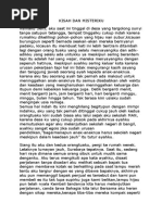 matanya, mengalir jadikan menganak sungai namun tidak sedikitpun dia menyekanya atau sesungukan seperti lajimnya orang menangis. Malam mulai menjemput, menghadirkan bulan yang datang dengan malu-malu menyembul di pelataran angkasa luas bersama bintang-bintang gemerlap. Sunyi yang ada hingga terdengar jelas nyanyian serangga malam menghadirkan lagu kidung malam, disegudang keperihan dalam kegelapan. Iya dia masih disitu kini terdengar lirih suaranya melangukan kidung kerinduan akan sesuatu untuk bisa dia dekap dalam hadir nyata. Malang sungguh telah hadir di kehidupannya kini, tiada siapa yang bisa tau akan apa yang telah terjadi dalam kenyataan yang pernah dihadapinya saat harus kehilangan semua yang di cintai. Adakah puing-puing berserakan kan bisa menjadi kesaksian yang nyata? Bisakah sang angin beritakan kejadian yang sesungguhnya dan bisakah sang senja kala itu menaungi rasa takut yang mencekam diri dan saudara-saudaranya. Saat itu yang ada hanya pasrah dalam doa, entah hari ini atau lusa dia atau keluarga yang lain yang menjadi giiliran kebiadaban perang. Sore itu, sekembalinya dari sekolah, belum sempat Diah melepas seragam sekolah dan melepas penat karena seharian berkutit dengan pelajaran, tiba-tiba bapaknya dan ibunya menyuruh Diah dan adik-adiknya agar siap-siap karena mereka harus pindah untuk sementara ke desa sebelah. memangnya ada apa lagi pak? tanya ku penasaran saat sehabis sholat Isya berjamaah, meski aku sudah menduga pasti ada kerusuhan lagi yang akan terjadi di desa ini seperti yang sudahsudah. kabarnya penduduk desa mendengar kalau akan ada penyerangan oleh perusuh-perusuh kedesa kita. Aku dan adik-adikku cuma bisa membayangkan kengerian pasti kan terjadi. Malam itu kami sekeluarga berjaga-jaga agat tidak tertidur terlampau pulas. Ku lihat ibu membelai kening si kecil Milah yang saat itu masih berumur tujuh tahun dan adikku Ridho berusia dua belas tahun. Tidak bisa rasanya mataku untuk terpejam walau barang sejenak. Bapak pun tak bisa menyembunyikan kegelisahan di raut wajahnya yang sudah termakan usia, namun masih nampak tegar meski terkadang sakit-sakitan. Ibu menatapku penuh kesedihan sekakan dia dapat merasakan kegelisahan dalam keluarga, apa yangkan terjadi nanti.
