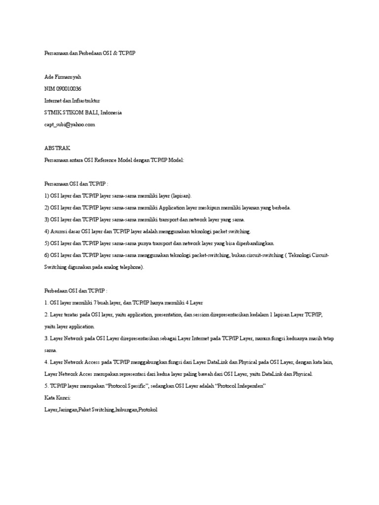 ABSTRAK Persamaan antara OSI Reference Model dengan TCP/IP Model: