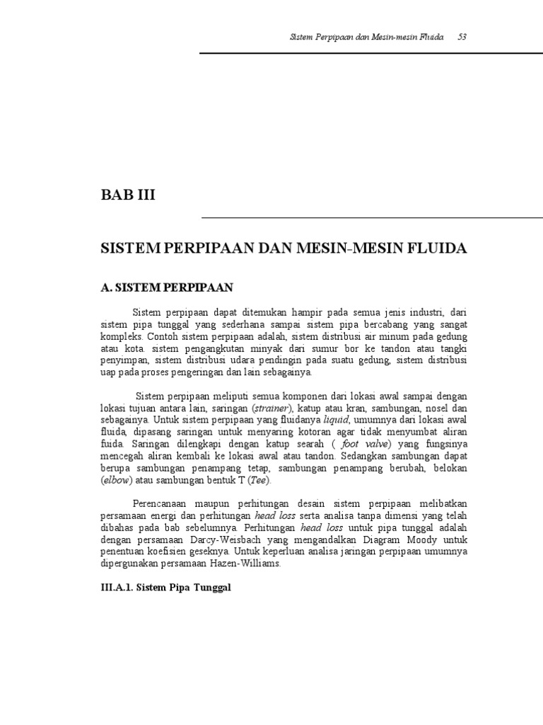 dibahas pada bab sebelumnya. Perhitungan head loss untuk pipa tunggal adalah