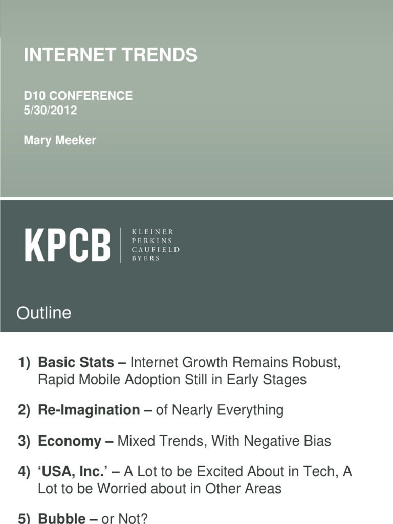 The information offered in this presentation speaks to industry trends in general, and should not be construed as providing any particular recommendations or analysis for any specific company that is mentioned in this presentation. KPCB is a venture capital firm that owns significant equity positions in certain of the companies referenced in this presentation.