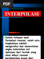 (1) Kebutuhan akan BK untuk hidup pokok dan produksi susu: Terlebih dahulu dihitung produksi susu dalam 4% FCM (Fat Corrected Milk) = 0,4 produksi susu + 15 produksi lemak = (0,4 x 13) + 15(0,035 x 13) = 12 kg Kemudian lihat kebutuhan BK dengan produksi 12 kg susu 4% FCM pada Tabel 4. Bila tidak ada lakukan interpolasi sbb: Kebutuhan BK = 2,40 + (12 10)/(15 10) x (2,65 2,40) = 2,5% bobot badan Jadi BK yang dibutuhkan sapi tersebut di atas = 2,5/100 x 450 kg = 11,25 kg