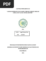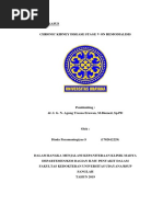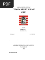 7. Kurang pengetahuan tentang kondisi, prognosis dan tindakan medis (hemodialisa) b.d salah interpretasi informasi. a. b. Kaji ulang penyakit/prognosis dan kemungkinan yang Beri pendidikan kesehatan mengenai pengertian, akan dialami. penyebab, tanda dan gejala CKD serta penatalaksanaannya (tindakan hemodialisa ). c. d. e. Libatkan keluarga dalam memberikan tindakan. Anjurkan keluarga untuk memberikan support system. Evaluasi pasien dan keluarga setelah diberikan penkes. DAFTAR PUSTAKA Carpenito, Lynda Juall. (2000). Buku Saku Diagnosa Keperawatan. Edisi 8. Jakarta : EGC Doenges E, Marilynn, dkk. (1999). Rencana Asuhan Keperawatan : Pedoman Untuk Perancanaan dan Pendokumentasian Perawatan Pasien. Edisi 3. Jakarta : EGC Long, B C. (1996). Perawatan Medikal Bedah (Suatu Pendekatan Proses Keperawatan) Jilid 3. Bandung : Yayasan Ikatan Alumni Pendidikan Keperawatan Price, Sylvia A dan Lorraine M Wilson. (1995). Patofisiologi Konsep Kllinis Proses-proses Penyakit. Edisi 4. Jakarta : EGC Smeltzer, Suzanne C dan Brenda G Bare. (2001). Buku Ajar Keperawatan Medikal Bedah Brunner & Suddarth. Edisi 8. Jakarta :EGC Suyono, Slamet. (2001). Buku Ajar Ilmu Penyakit Dalam. Edisi 3. Jilid I II. Jakarta.: Balai Penerbit FKUI
