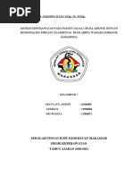 R: Mengidentifikasi kekurangan nutrisi b. Perhatikan adanya mual dan muntah R: Gejala yang menyertai akumulasi toksin endogen yang dapat mengubah atau menurunkan pemasukan dan memerlukan intervensi c. d. e. Beikan makanan sedikit tapi sering Tingkatkan kunjungan oleh orang terdekat selama makan Berikan perawatan mulut sering R: Porsi lebih kecil dapat meningkatkan masukan makanan R: Memberikan pengalihan dan meningkatkan aspek sosial R: Menurunkan ketidaknyamanan stomatitis oral dan rasa tak disukai dalam mulut yang dapat mempengaruhi masukan makanan 4. Perubahan pola nafas berhubungan dengan hiperventilasi sekunder: kompensasi melalui alkalosis respiratorik Tujuan: Pola nafas kembali normal / stabil Intervensi: a. b. c. d. Auskultasi bunyi nafas, catat adanya crakles Ajarkan pasien batuk efektif dan nafas dalam Atur posisi senyaman mungkin Batasi untuk beraktivitas R: Menyatakan adanya pengumpulan sekret R: Membersihkan jalan nafas dan memudahkan aliran O2 R: Mencegah terjadinya sesak nafas R: Mengurangi beban kerja dan mencegah terjadinya sesak atau hipoksia 5. Kerusakan integritas kulit berhubungan dengan pruritis Tujuan: Integritas kulit dapat terjaga dengan kriteria hasil : kulit Mempertahankan kulit utuh Menunjukan perilaku / teknik untuk mencegah kerusakan