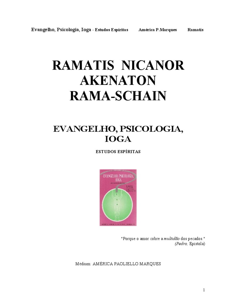 EVANGELHO, PSICOLOGIA, IOGA - Estudos Espiritas - Obra inspirada por Ramatis e outros Guias Espirituais da Fraternidade do Tringulo, da Rosa e da Cruz (FTRC), atravs da sensibilidade de Amrica Paoliello Marques. um conjunto de 28 estudos organizados em sete ciclos de quatro, numa ordem, ritmo e seqncia profundamente significativos ditados nas dcadas de 60 e 80. Serve de roteiro seguro para os que buscam abrir os canais interiores para o contato com a sua Essncia Divina. Essas lies constituem o arcabouo filosfico da FTRC, representando a fus de ensinamentos do Mentalismo Oriental e do Evangelho de Jesus, apoiando-se em orientaes basicas do Espiritismo ditadas a Allan Kardec pelos Orientadores Espirituais da Humanidade, e visando tambm lanar luz sobre as modernas teorias da Psicologia. Segundo Ramatis, "pesquisar" a alma humana em dimenses do que poderamos classificar de "Psicologia Abissal" conhecer os atalhos atravs dos quais o homem desembocou na angstia dos tempos moderr emer descer s regies escuras do passado reencarnatrio para, em seguida, impulsiona-la grandiosa sntese do ser imortal - abismos inferiores e superiores, nos quais o homem de hoje precisar aprender a arrojar-se, tal como a cincia material desce ao fundo dos oceanos, repositrios das reservas acumuladas pela Terra e lanarse igualmente aventura que o conduzir ao futuro intercmbio interplanetrio. Amrica Paoliello Marques, mdium de alta sensibilidade, fundadora do trabalho espiritual e comunitrio da Fraternidade do Tringulo, da Rosa e da Cruz. Aps mais de 40 anos de vivncia nesse trabalho com um grupo de sensitivos, desenvolveu uma pesquisa sria de carter cientfico. Transformou o resultado de uma experincia inicitica numa tese de doutoramento, e em 1982 obteve o grau de Ph. D pelo International Institute for Advanced Studies, Saint-Louis USA. Es:, se deu reconhecimento cientfico a Psicologia Abissal chamando a ai de pes(, lores de prestgio internacional que estiveram no Brasil visitando o seu trabalho, como Willis Harman, Ph. D, presidente do Institute of Noetic Science.s, Califrnia (fundado pelo ex-astronauta Edgard Mitchell), Stanley Krippner, Ph. D, do Centro de Estudos da Conscincia do Saybrook Institute (Califrnia) e Edith Fiore, Ph. D, uma das maiores autoridades mundiais em terapias de vidas passadas.