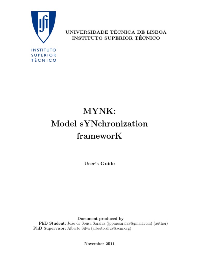 In this manual, we have presented the MYNK model synchronization language. The ReMMM metamodel and MYNK itself have been explained in great detail, and their concepts have been dened. Finally, we have presented small examples of synchronizations between: (1) the CMS-ML and CMS-IL languages; and (2) the CMS-ML and UML languages.