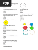 9. Volume bola dengan diameter 7 dm adalah . a. 25,6 dm3 c. 628,8 dm3 3 b. 179,5 dm d. 1.257,6 dm3 10. Luas bola dengan jari-jari 5 cm adalah . a. 78,5 cm2 b. 179,5 cm2 c. 314 cm2 d. 628 cm2