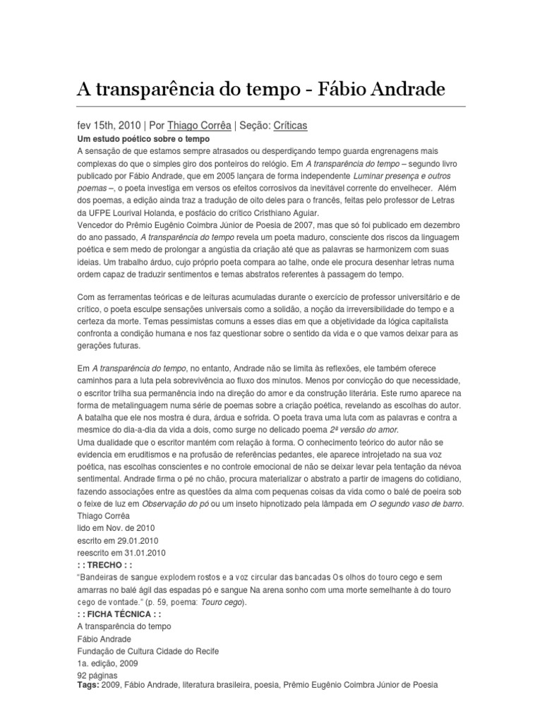 "O que fao uma bosta, disse o velhinho, arregalando os olhos. Ergueu de leve o pescoo ao tentar se elevar da poltrona verde onde afundava, ps descalos estendidos no pufe, num apartamento no bairro da Torre, no Recife. Sua voz estava trmula, baixa e suave: acabara de retornar do hospital, onde se recuperava de uma pneumonia. Logo de manh voc no sente a prpria bosta? Fiz muita bosta nessa vida. Mas no ria, no, porque foi bosta da boa. Referia-se ao seu volume de Poemas, editado no fim de 2011 e premiado pela Biblioteca Nacional. Era o primeiro livro que publicava em 94 anos. Voc tem minha bno para escrever bosta, autorizou Daniel Lima, padre, professor de teologia, latim e filosofia. Vestia uma camisa listrada clara e culos de lentes fundo de garrafa que serviam de anteparo ao olhar intenso de espanto perptuo. Tem bolo de rolo l em So Paulo?, perguntou, oferecendo uma fatia finssima do mais famoso quitute pernambucano (depois das empadinhas de Garanhuns). Uma longa tosse escavava sua voz fraca. Quem falava mais eram a escritora Luzil Gonalves e a bibliotecria Clia Veloso, fiis companheiras do padre. Foram elas as responsveis pela publicao dos Poemas, de modo quase clandestino: at os 90 anos, Lima era notrio por fazer livros cujo nico exemplar emprestava a um amigo e tomava de volta depois de um ano. Nunca quis public-los, por achar que era vaidade de intelectual, coisa que o horrorizava.