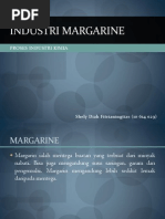 Margarin Margarin dapat dibuat dari lemak hewani, yakni salah satunya diproduksi dari lemak beef yang disebut oleo-margarine. Margarin sedikitnya mengandung 80% lemak dari total beratnya. Sisanya (kurang lebih 17-18%) terdiri dari turunan susu skim, air, atau protein kedelai cair. Dan sisanya 1-3% merupakan garam, yang ditambahkan sebagai flavor. Proses Pembuatan 1. Tahap Netralisasi Netralisasi adalah suatu proses untuk memisahkan asam lemak bebas dari minyak atau lemak dengan cara mereaksikan asam lemak bebas dengan basa atau pereaksi lainnya sehingga membentuk sabun (soap stock). Netralisasi dengan kaustik soda (NaOH) banyak dilakukan dalam skala industri, karena lebih efisien dan lebih murah dibandingkan dengan cara netralisasi lainnya. 2. Tahap Bleaching (pemucatan) Pemucatan ialah suatu proses pemurnian untuk menghilangkan zat-zat warna yang tidak disukai dalam minyak. Pemucatan dilakukan dengan mencampur minyak dengan sejumlah kecil adsorben, seperti bleaching earth (tanah pemucat), dan karbon aktif. Zat warna dalam minyak akan diserap oleh permukaan adsorben dan juga menyerap suspensi koloid (gum dan resin) serta hasil degradasi minyak misalnya peroksida. (Ketaren,1986).