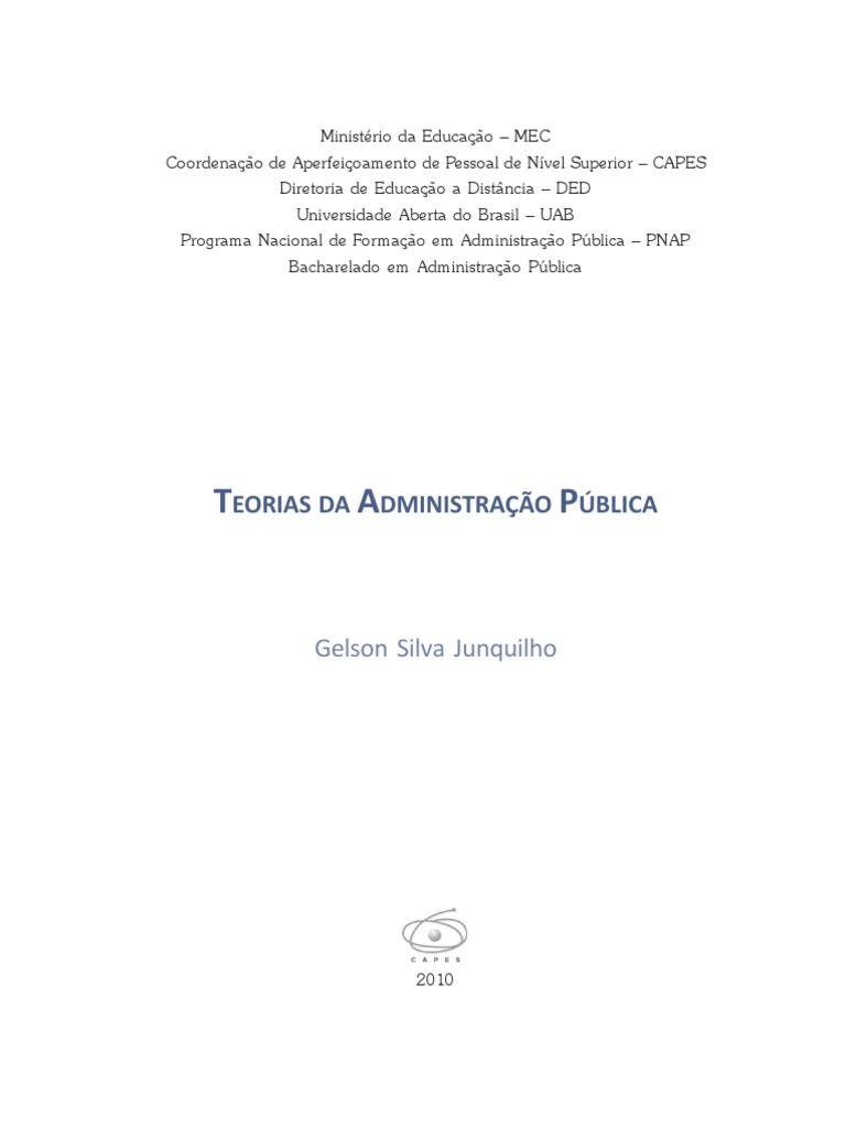 Junquilho, Gelson Silva Teorias da administração pública / Gelson Silva Junquilho. – Florianópolis :