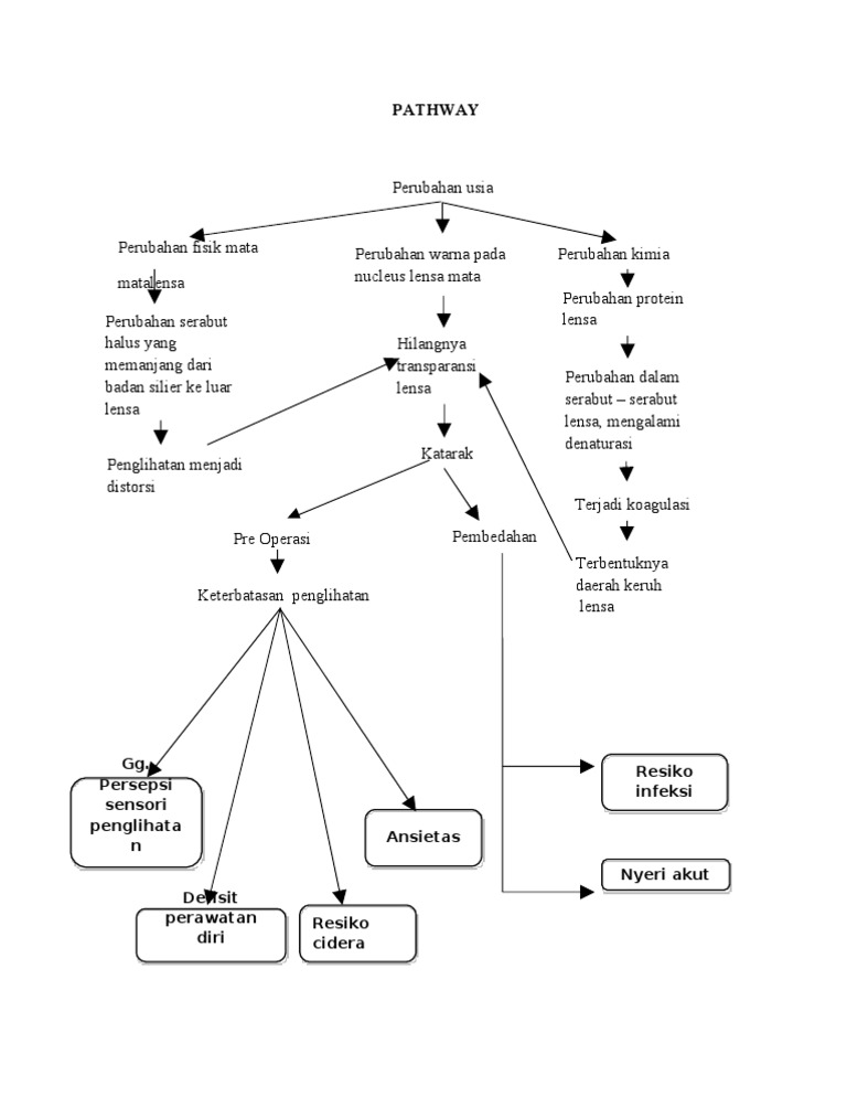 Perubahan usia Perubahan fisik mata matalensa Perubahan serabut halus yang memanjang dari badan silier ke luar lensa Penglihatan menjadi distorsi Pre Operasi Keterbatasan penglihatan