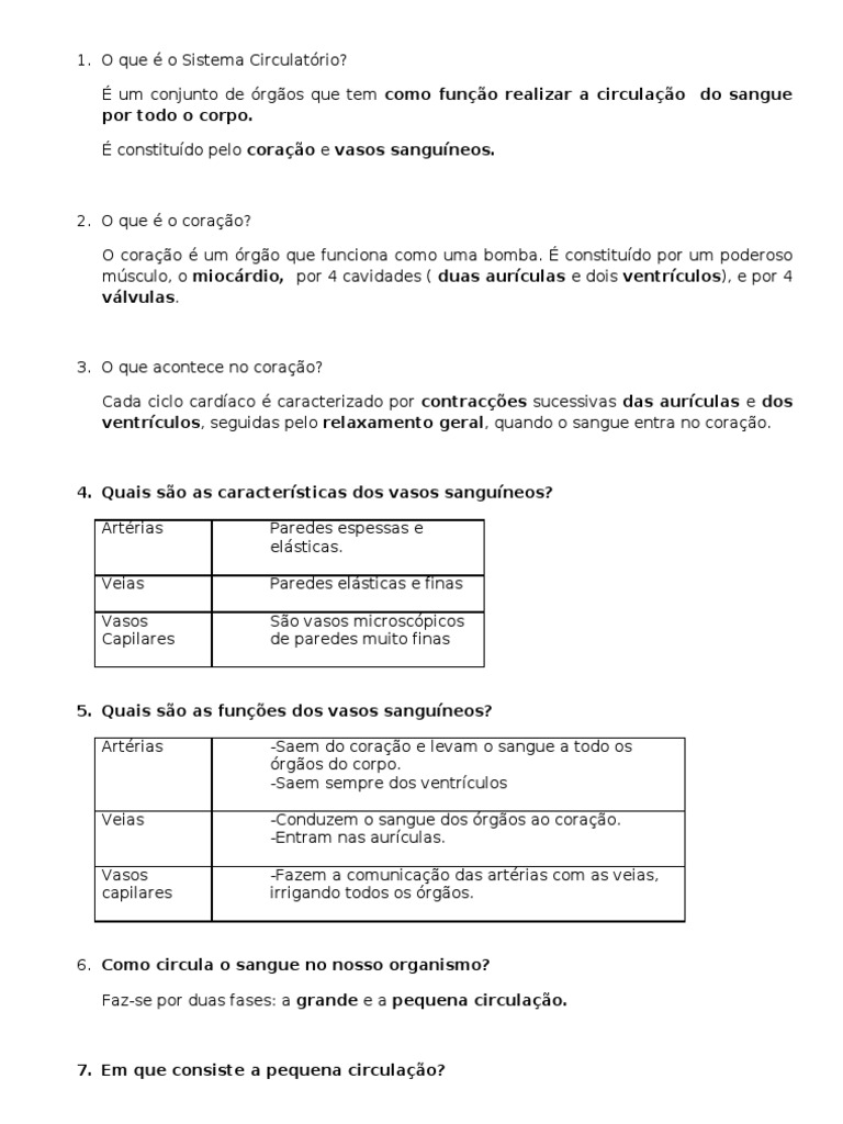 6. Como circula o sangue no nosso organismo? Faz-se por duas fases: a grande e a pequena circulao.
