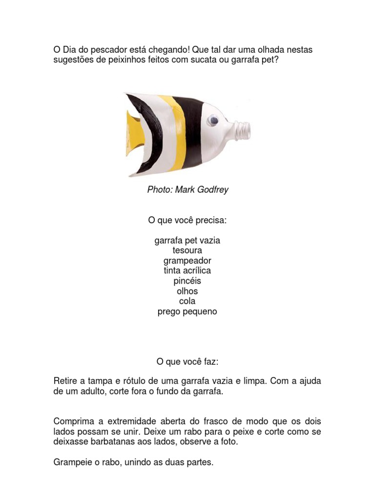 Que tal dar uma olhada nestas sugestes de peixinhos feitos com sucata ou garrafa pet?
