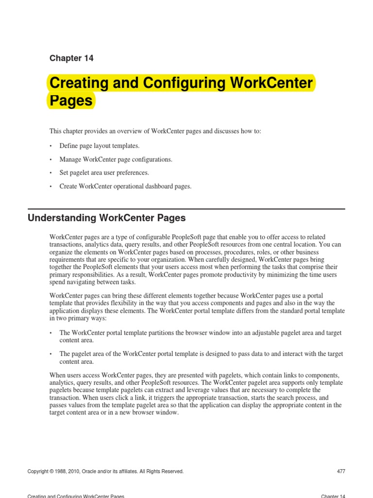 Convert existing content references to WorkCenter pages. View existing WorkCenter page configurations. Delete existing WorkCenter page configurations.