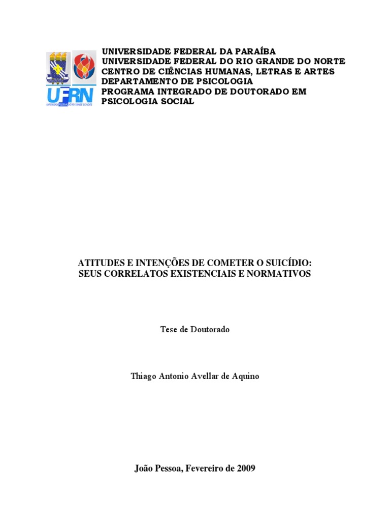 ATITUDES E INTENES DE COMETER O SUICDIO: SEUS CORRELATOS EXISTENCIAIS E NORMATIVOS Thiago Antonio Avellar de Aquino