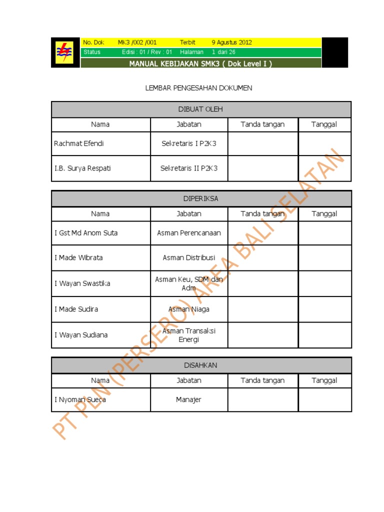 Manual Kebijakan SMK3 PT PLN Bali