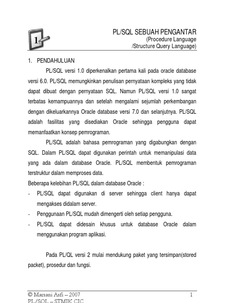 PL/SQL versi 1.0 diperkenalkan pertama kali pada oracle database