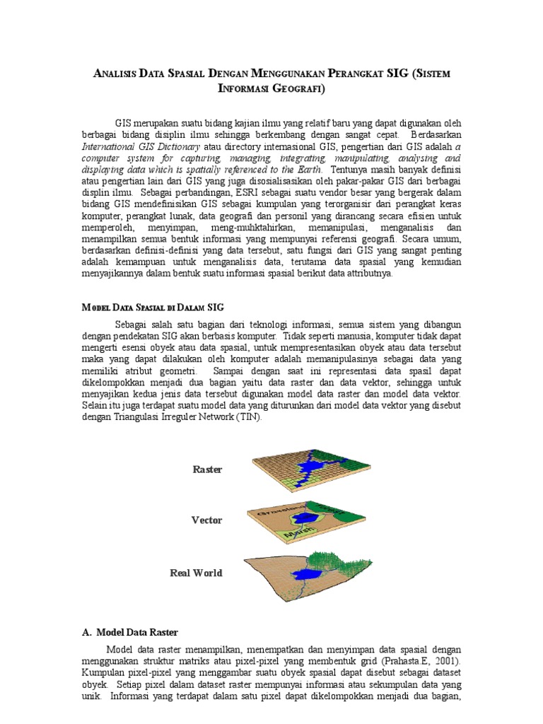 dengan unsur-unsur obyek spasialnya (peta). Akurasi model data ini tergantung pada resolusi