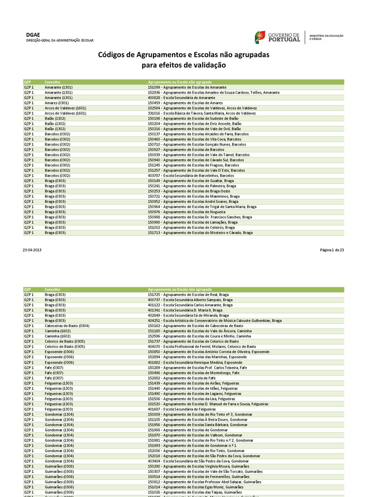 Agrupamento ou Escola no agrupada 153023 - Agrupamento de Escolas de Mono 150769 - Agrupamento de Escolas Dr. Manuel Pinto de Vasconcelos, Paos de Ferreira 151117 - Agrupamento de Escolas de Paos de Ferreira 151476 - Agrupamento de Escolas de Eiriz, Paos de Ferreira 151488 - Agrupamento de Escolas de Frazo, Paos de Ferreira 403374 - Escola Secundria de Paos de Ferreira 150770 - Agrupamento de Escolas de Cristelo, Paredes 150782 - Agrupamento de Escolas de Sobreira, Paredes 150861 - Agrupamento de Escolas de Lordelo, Paredes 151452 - Agrupamento de Escolas Daniel Faria, Baltar, Paredes 151543 - Agrupamento de Escolas de Paredes 151555 - Agrupamento de Escolas de Vilela, Paredes 402424 - Escola Secundria de Paredes 152614 - Agrupamento de Escolas de Coura, Paredes de Coura 152535 - Agrupamento de Escolas de Pao de Sousa, Penafiel 152547 - Agrupamento de Escolas D. Antnio Ferreira Gomes, Penafiel 152559 - Agrupamento de Escolas Joaquim de Arajo, Guilhufe, Penafiel 152560 - Agrupamento de Escolas de Penafiel Sudeste 152572 - Agrupamento de Escolas de Pinheiro, Penafiel 402473 - Escola Secundria de Penafiel 152626 - Agrupamento de Escolas de Ponte da Barca 152638 - Agrupamento de Escolas da Correlh, Ponte de Lima 152640 - Agrupamento de Escolas de Arcozelo, Ponte de Lima 152651 - Agrupamento de Escolas Antnio Feij, Ponte de Lima 152663 - Agrupamento de Escolas do Freixo, Ponte de Lima 403039 - Escola Secundria de Ponte de Lima 404287 - Escola Profissional de Agricultura e Desenvolvimento Rural de Ponte de Lima 150400 - Agrupamento de Escolas do Viso, Porto 150873 - Agrupamento de Escolas Fontes Pereira de Melo, Porto 151385 - Agrupamento de Escolas Eugnio de Andrade, Porto 152158 - Agrupamento de Escolas do Cerco, Porto 152160 - Agrupamento de Escolas do Amial, Porto 152171 - Agrupamento de Escolas Infante D. Henrique, Porto 152183 - Agrupamento de Escolas Carolina Michaelis, Cedofeita, Porto 152195 - Agrupamento de Escolas Manoel de Oliveira, Porto 152201 - Agrupamento de Escolas Garcia de Orta, Porto 152213 - Agrupamento de Escolas Leonardo Coimbra-Filho 152225 - Agrupamento de Escolas de Aurlia de Sousa, Porto 152237 - Agrupamento de Escolas Antnio Nobre, Porto 152870 - Agrupamento de Escolas Clara de Resende, Porto
