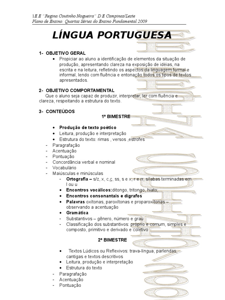 Plano de Ensino: Quartas Séries do Ensino Fundamental 2009