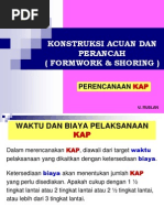 Tahap Pemasangan Bekisting Pada pekerjaan bekisting, khususnya bekisting plat dan balok biasanya dilakukan pekerjaan perancah. Pekerjaan perancah dilakukan untuk mendukung perencanaan pembuatan bekisting balok dan pelat. Pertama-tama yang harus dilakukan sebelum mendirikan scaffolding adalah memasang jack base pada kaki untuk memudahkan pengaturan ketinggian, setelah itu baru dapat disusun dan disambung antara yang satu dengan lainnya menggunakan joint pin, dan bagian atasnya dipasang U-head untuk menjepit balok kayu yang melintang.