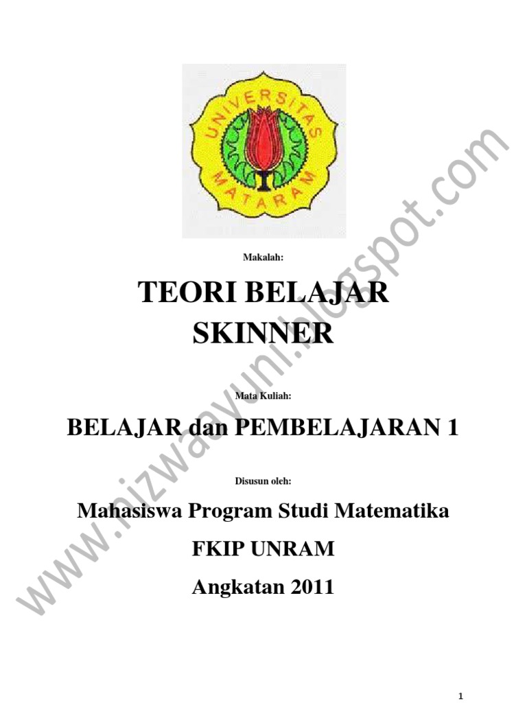 BAB I PENDAHULUAN 1.1 Latar Belakang Menurut Skinner penyelidikan mengenai kepribadiah hanya sah jika memenuhi beberapa kriteria ilmiah. Ia tidak akan menerima gagasan bahwa kepribadian yang membibing atau mengarahkan perilaku. Dalam hal ini Skinner membedakan perilaku menjadi dua yaitu perilaku yang alami dan perikau operan, perilaku alami menurutnya adalah perilau yang ditimbulkan oleh stimulus yang jelas sedangkan perilaku operan adalah perilaku yang ditimbulkan stimulus yang tidak jelas atau tidak diketahui tetapi semata mata dihasilkan oleh organisme itu sendiri. Bagi Skinner, faktor motifasional dalam tingkah laku bukan elemen dari struktural dalam situasi yang sama. Tingkah laku seseorang bisa berbeda beda kekuatan dan keseringan munculnya. Hakikat dari teori Skinner adalah teori belajar bagaiman individu memiliki tingkah laku baru menjadi lebih terampil menjadi lebih tahu. Skinner meyakinkan bahwa kepribadian dapat dipahami dengan mempertimbangkan tingkah laku dalam hubungannya yang terus menerus dengan lingkungannya sedangkan cara untuk mengontrol perilaku adalah dengan melakukan penguatan terhadap suatu strategi kegiatan yang membuat tingkah laku itu terjadi atau sebaliknya tidak terjadi pada masa yang akan datang. Dalam proses belajar mengajar manusia tidak bisa terlepas dari stimulus dan respon yang dialami sebagai suatu tanggapan atas suatu rangsangan yang masuk. Para ilmuwan terdahulu banyak menggunakan hewan sebagai bahan percobaan terhadap teori-teori yang telah ditemukan, yang mana teori tersebut bila sudah teruji dengan baik maka dapat diaplikasikan terhadap manusia, diantaranya yaitu teori Burrhus Frederic Skinner, Edwin R Gutric, dan Clark Hull. 1.2 Rumusan Masalah Berdasarkan latar belakang di atas maka penulis merumuskan masalah sebagai berikut: 1. 2. 3. 4. 5. Bagaimanakah sejarah munculnya teori skinner? Bagaimanakah teori belajar menurut Skinner? Bagaimana prinsip-prinsip belajar menurut Skinner? Bagaimana pengaplikasian teori belajar Skinner terhadap pembelajaran? Apakah kelebihan dan kekurangan teori skinner?