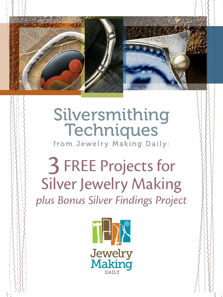 For a keepsake piece, try the Pottery Shard Brooch. This offbeat project will teach you how to set an unusual freeform focal: a bit of old china treasured for its antique pattern or perhaps because it belonged to a beloved grandmother. Whatever connection you have to your found object, youll learn how to work an irregular shape into a pleasing design as well as enhance the antique look with liver of sulfur, fabricate your own pin stem, and set a half-drilled button pearl. Add that professional touch to your handmade silver jewelry by learning to make your own findings, starting with Clasptastic! In this sterling silver findings project, youll learn to wire wrap an S hook and a hook and eye clasp, each as individual and handmade as the rest of your work using silver wire, pliers, cutters, jump rings, and a simple butane torch. Whether youre learning how to make silver jewelry for yourself or friends or to create custom silver jewelry to sell, youll find Silversmithing Techniques from Jewelry Making Daily: 3 Free Projects for Silver Jewelry Making plus Bonus Silver Findings Project a valuable reference and source of inspiration.