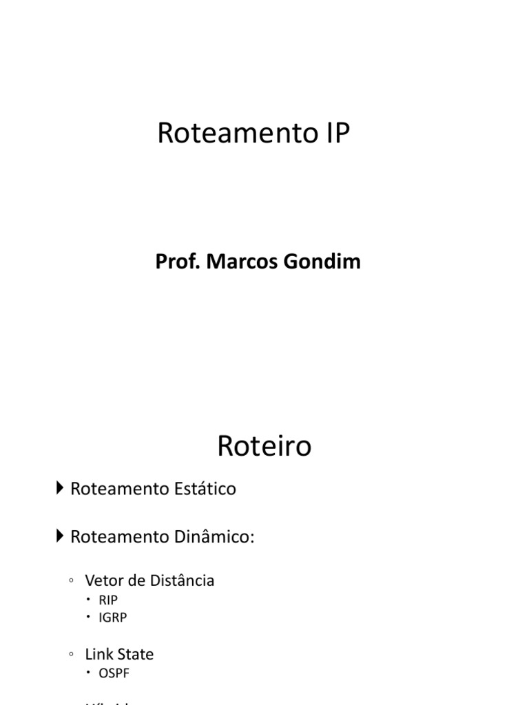Roteamento Esttico Roteamento Dinmico: