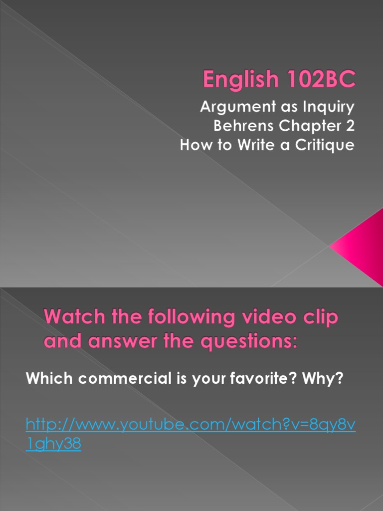 Group activity Choose an ad in Behrens text (pg 578-599)