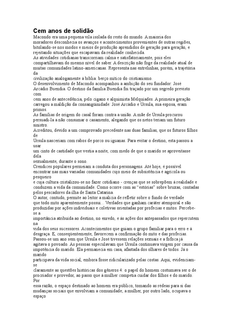 Macondo era uma pequena vila isolada do resto do mundo. A maioria dos
