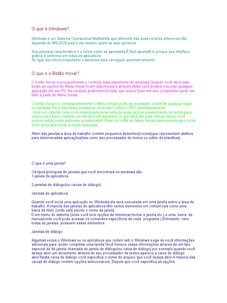 Windows é um Sistema Operacional Multitarefa que diferente das suas versões anteriores,não