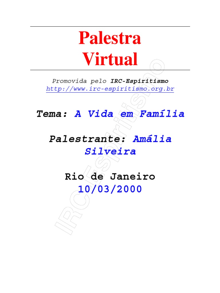 Vemos a a importncia da famlia como um plano de Deus. Para compreendermos mais um pouco, Joanna de ngelis no livro "Estudos Espritas" nos diz: "A famlia um grupo de espritos normalmente necessitados, desajustados, em compromisso inadivel para a reparao, graas a contingncia reencarnatria." E, para encerrar a introduo, Joanna ainda, no livro "SOS Famlia", diz, na pgina 23: "A famlia , antes de tudo, um laboratrio de experincias reparadoras, na qual a felicidade e a dor se alternam, programando a paz futura." Estamos abertos s perguntas sobre este tema. (t) Perguntas/Respostas: