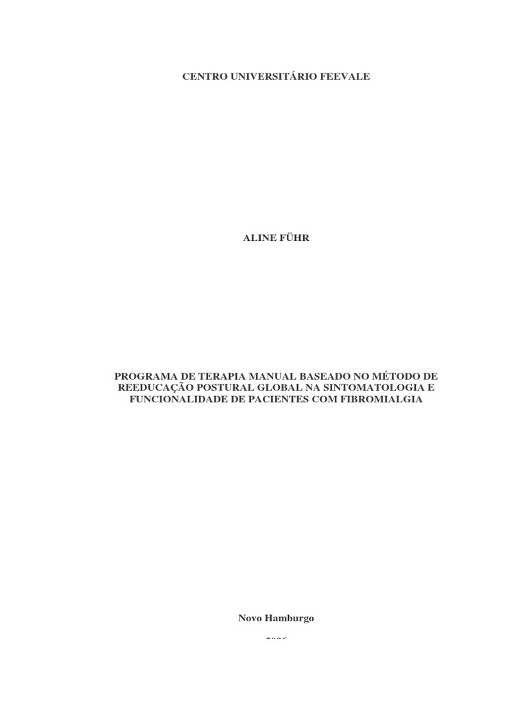 Feevale por ser uma proposta nova de tratamento, que visa trabalhar com terapia manual baseada no mtodo de Reeducao Postural Global com pacientes fibromilgicos.